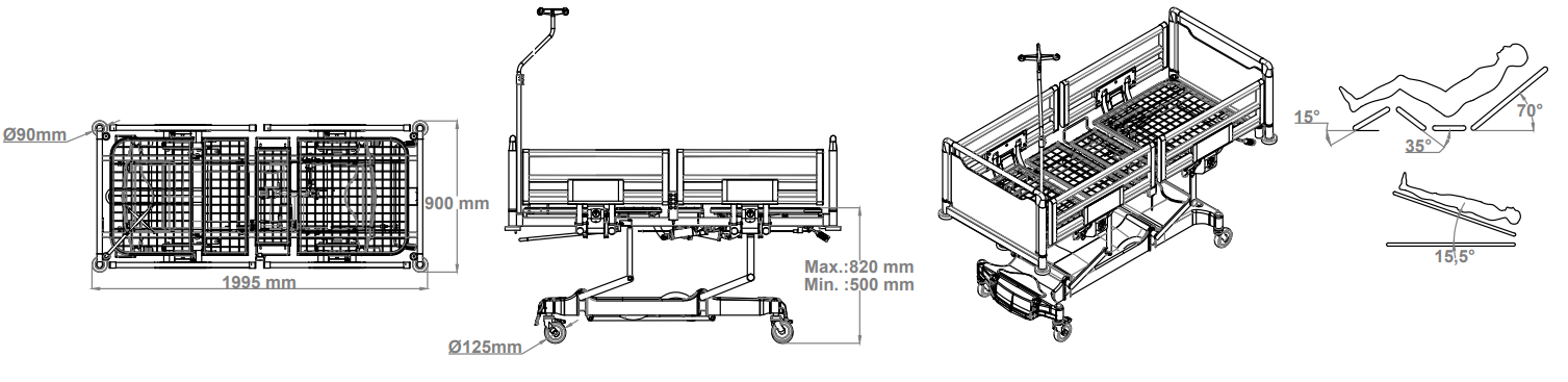 Тренделенбург (опция): механический, до 15,5°